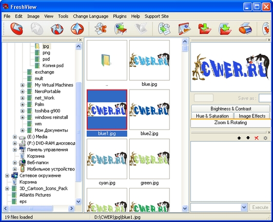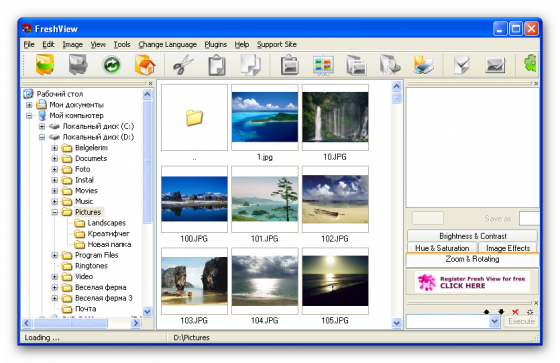 Универсальный просмотрщик и конвертер мультимедийных файлов. Fresh View позволяет просматривать графические и воспроизводить аудио/видео файлы различных форматов. В этой версии поддерживается 86 различных форматов (практически с каждым обновлением разработчики добавляют поддержку новых форматов). Кроме того, предусмотрена возможность переводить некоторые файлы из одного формата в другой. Интерфейс выполнен в классическом для графических просмотрщиков стиле: в левой части дерево дисков, в правой - превью-изображения просматриваемых объектов. Отдельно стоит отметить возможность Fresh View создавать HTML-альбомы из директорий с графикой.